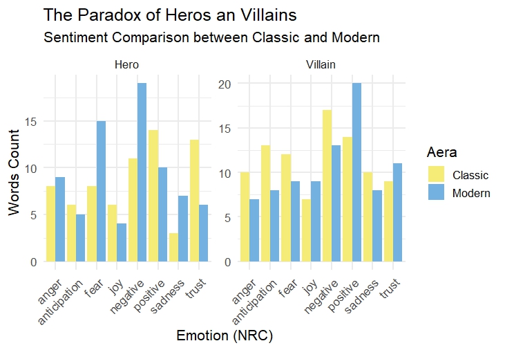 The idea that heroes and villains can be clearly distinguished is one of the most stable narrative patterns in popular culture. Heroes stand for hope, morality and salvation, while villains represent chaos, destruction and egoism. Since the authors of these characters live in our real world, fiction is never an isolated laboratory but always also a reflection of societal trends and viewpoints of the time in which it was created. For this reason, a data-driven look at selected fictional characters can reveal what has actually happened to our understanding of good and evil over the past decades, and whether it is still possible to distinguish one from the other.